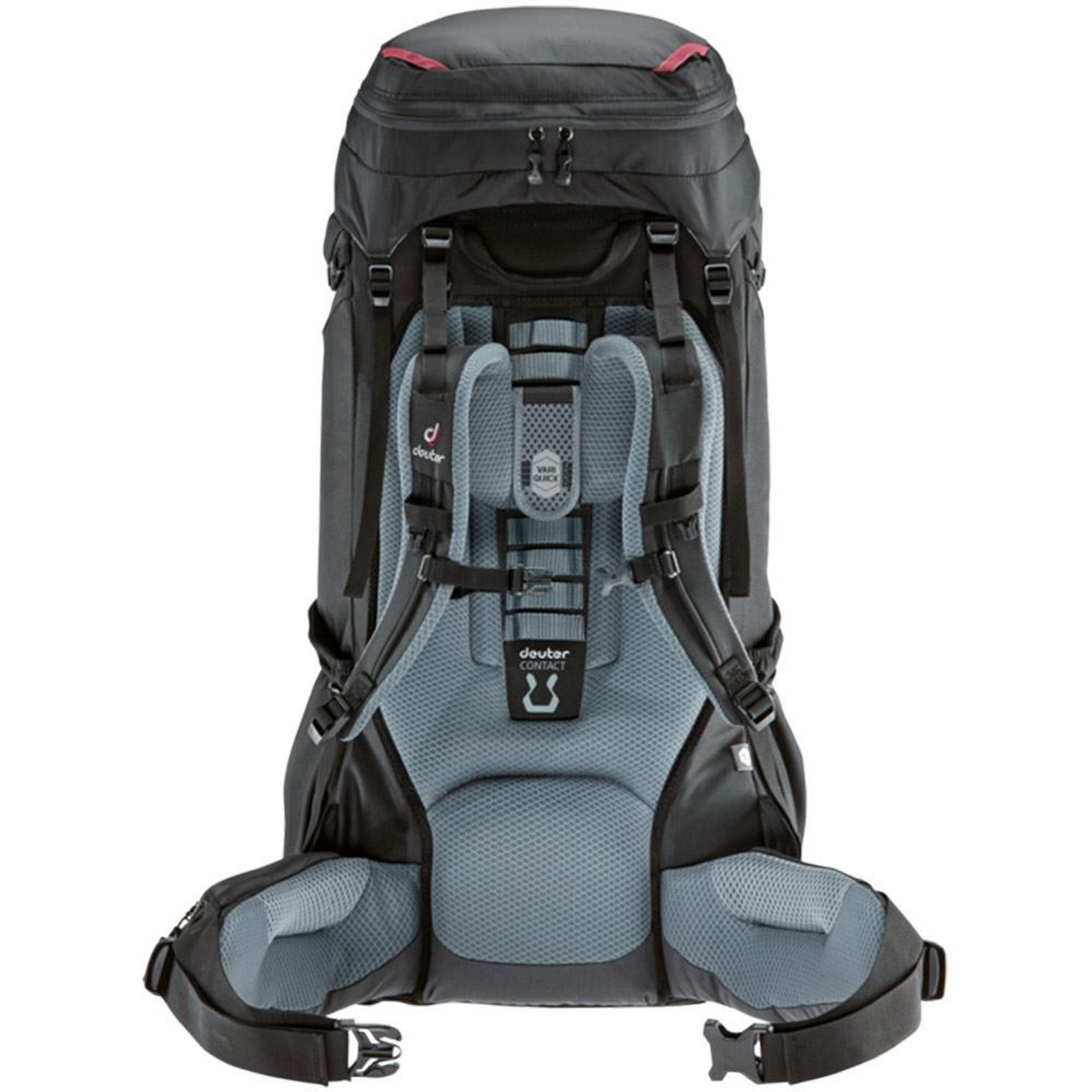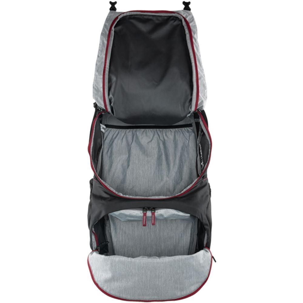 This bag features a slimline fit, so it has a shorter back length making it more comfortable for those with a smaller frame. The adjustable lid on this pack allows for extra room, the front opening gives you easier access and the bottom compartment has a removable separator to help with load placement. It’s got a contact back system with an adjustable back length, and a flexible X frame with ergonomic hip fins to efficiently transfer weight. To protect your pack from rain or damage, just pop on the transport cover, and keep your essentials you want to access easily in the two external pockets.