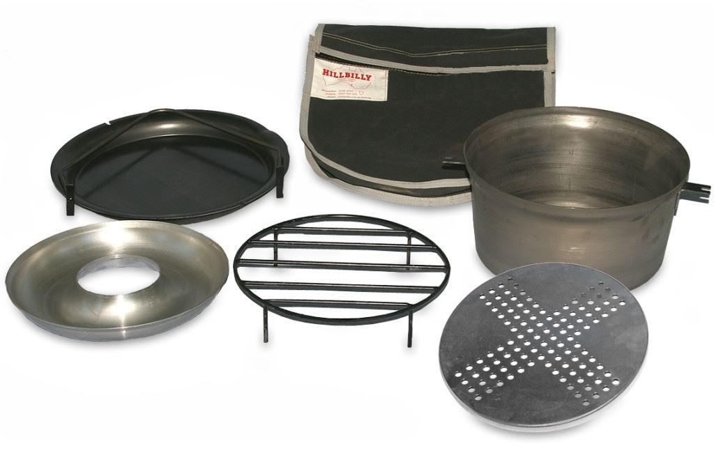 This set is comprised of a 12.5L BushRanger camp oven, lid and handle, baking trivet, veggie ring, and pot stand that are all made from heavy-duty welded steel. With some care and regular seasoning, this kit should last you a lifetime of adventure. It also comes with a carry bag included for easy storage and transport to and from your campsite.