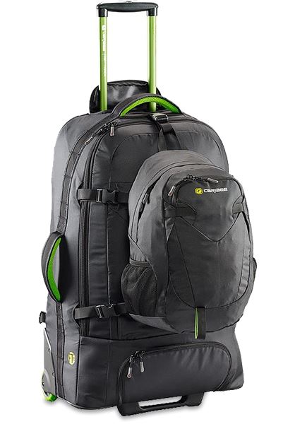 The Caribee Fast Track 85 Wheeled Travel Pack has a large capacity and a lightweight and functional design.