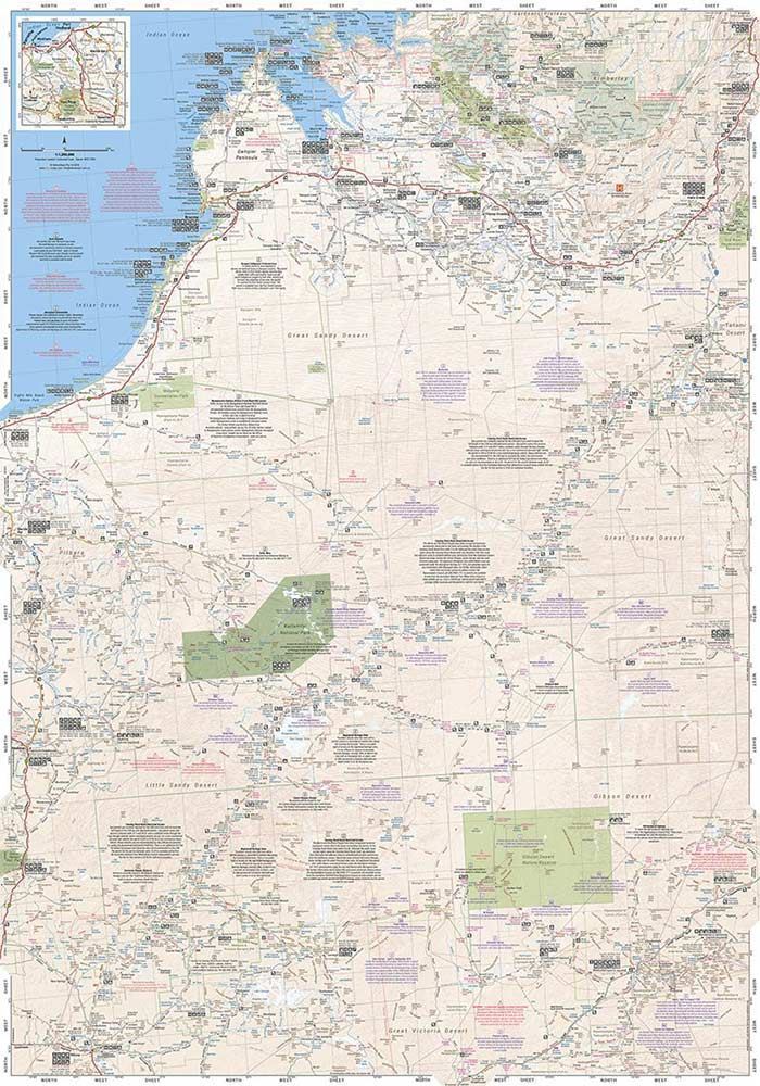 If you’re planning on exploring the highways, roads and tracks that the west has to offer, then let the Great Desert Tracks Western Sheet from Hema guide you through your next outback adventure.