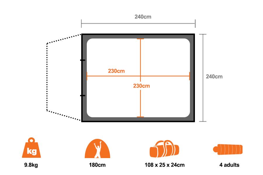 Ideal as a lightweight touring tent, the Traveller 4P has a roomy interior and comes with the poles required to extend the front awning for a little extra shelter and sun protection.