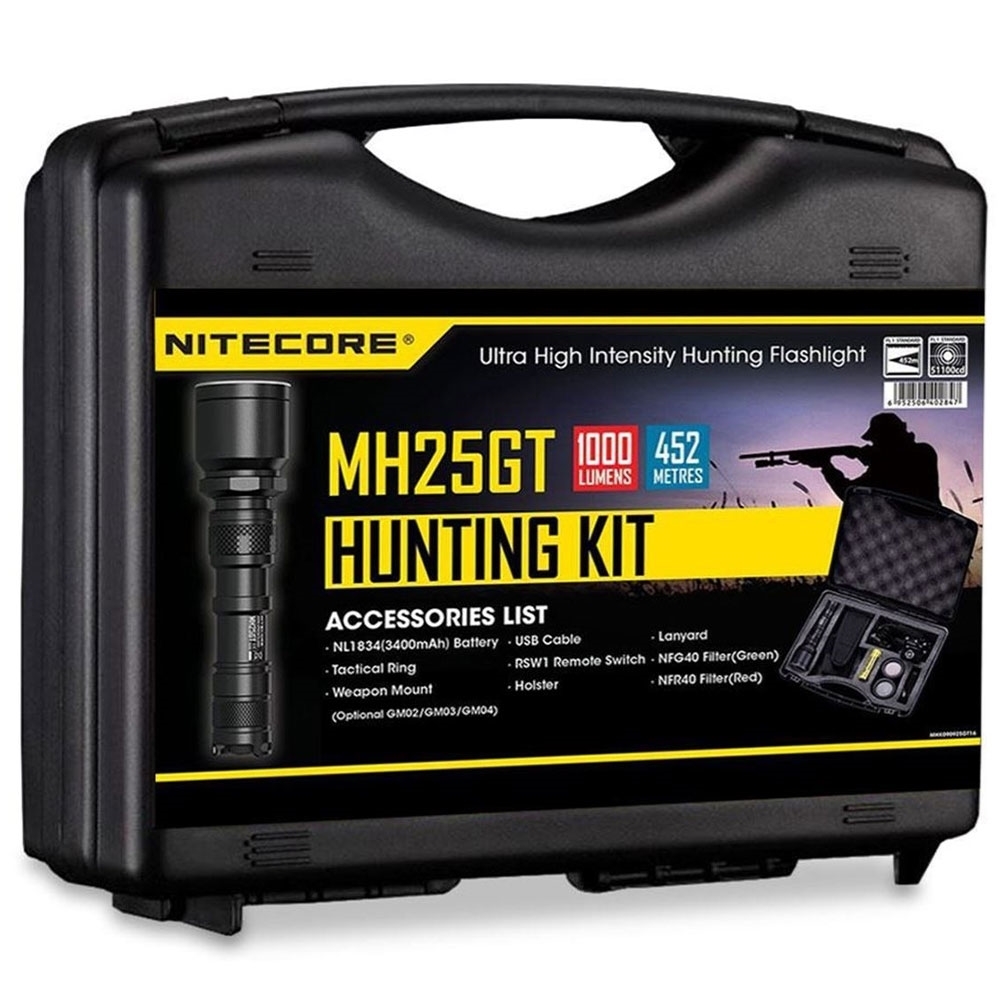 The Nitecore MH25 Hunting Kit comprises all of the goodness of the MH25 Flashlight and everything else you will need on the hunt.