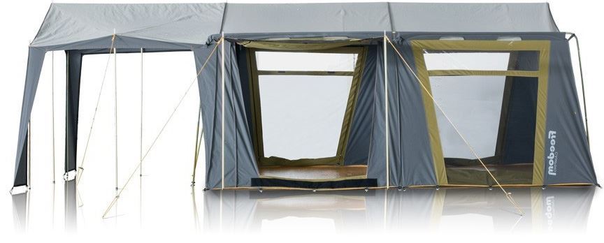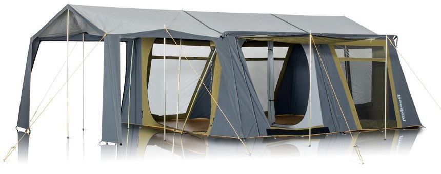 The Orion has a spacious living and sleeping area, and at full head height even 6-footers can roam around inside with ease. The fabric of this model is made from polyester and cotton and is 100% waterproof, but still highly breathable so it can be used in warm and cold weather. This makes the Orion a great all-rounder which will take you through longer trips with unexpected weather changes. You can fully zip up the doors to ensure total privacy in each main room, or you can divide the rear room into separate rooms using the removable curtain to create a more sectioned off space.